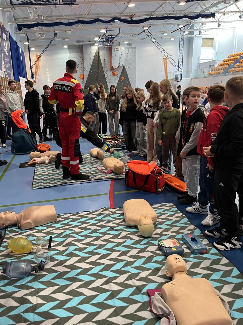 W trakcie zajęć uczniowie mogli skorzystać z wyjątkowego wsparcia OSP – Ratownictwo Wodne, którego członkowie, wraz z wyszkolonym psem ratownikiem, przeprowadzili praktyczne szkolenie z udzielania pierwszej pomocy i reagowania w sytuacjach zagrożenia. Dzieci miały okazję zobaczyć z bliska, jak wygląda praca ratowników oraz nauczyć się podstawowych czynności, które mogą okazać się kluczowe w realnych sytuacjach.