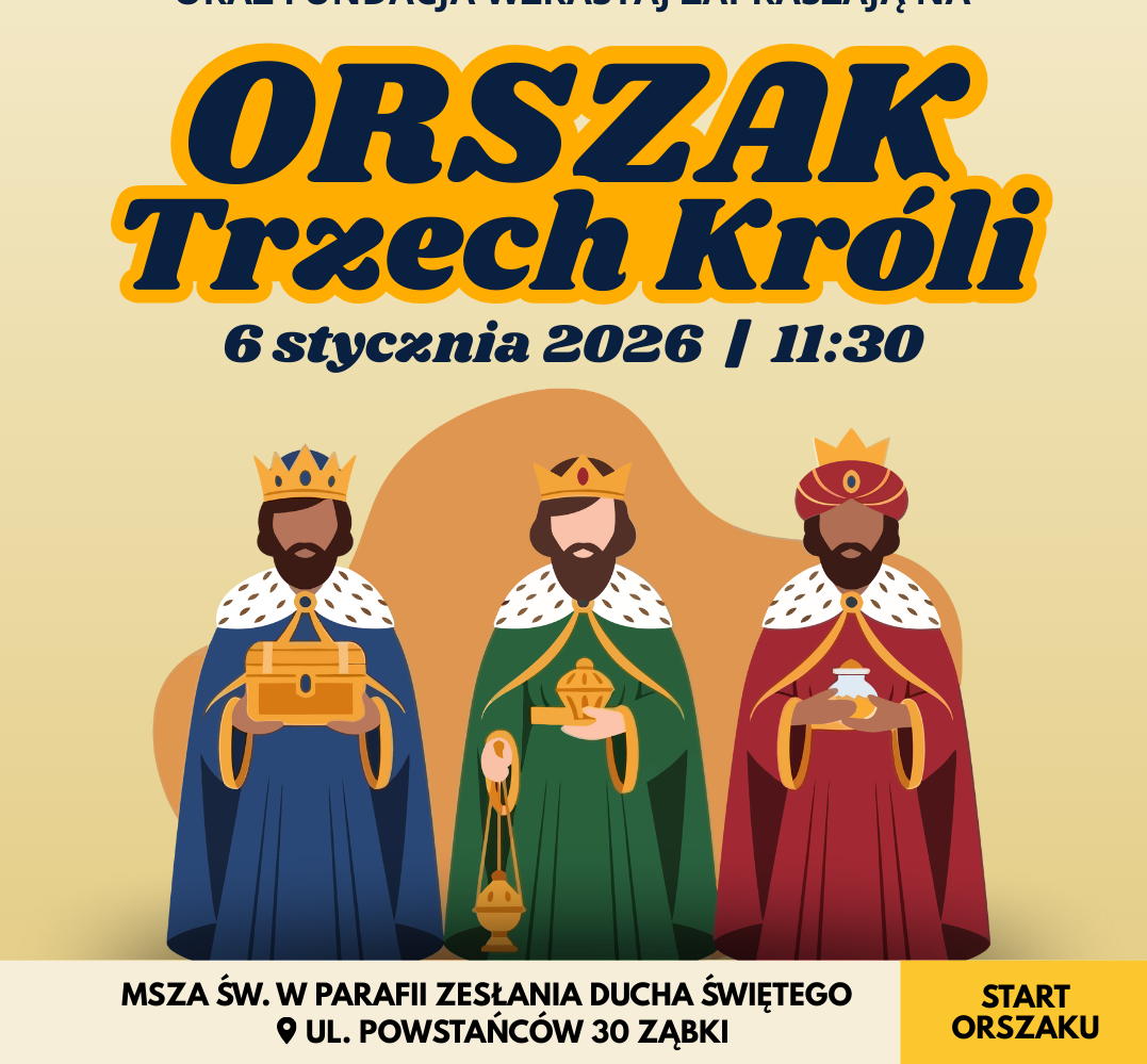 Wydarzenie odbywa się pod patronatem Małgorzaty Zyśk, Burmistrza Miasta Ząbki, która od lat wspiera inicjatywy integrujące lokalną społeczność i pielęgnujące tradycje. Organizatorzy serdecznie zapraszają całe rodziny, przyjaciół oraz znajomych do udziału w Orszaku Trzech Króli i wspólnego przeżycia tego wyjątkowego dnia.