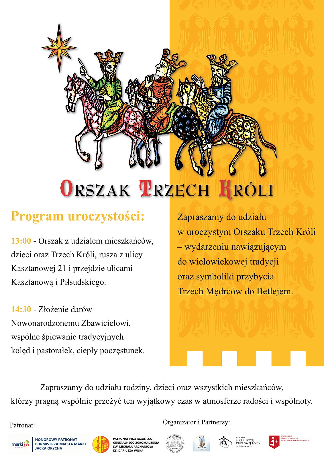 Uroczystości rozpoczną się o godzinie 13:00. Wówczas z ulicy Kasztanowej 21 wyruszy barwny orszak z udziałem mieszkańców, dzieci oraz symbolicznych Trzech Króli. W trakcie przemarszu nie zabraknie wspólnego śpiewania tradycyjnych kolęd i pastorałek, które wypełnią ulice Marek świąteczną atmosferą i radosnym brzmieniem znanych melodii. Organizatorzy zachęcają do aktywnego udziału w orszaku, wspólnego śpiewu oraz rodzinnego przeżywania tego wyjątkowego dnia.