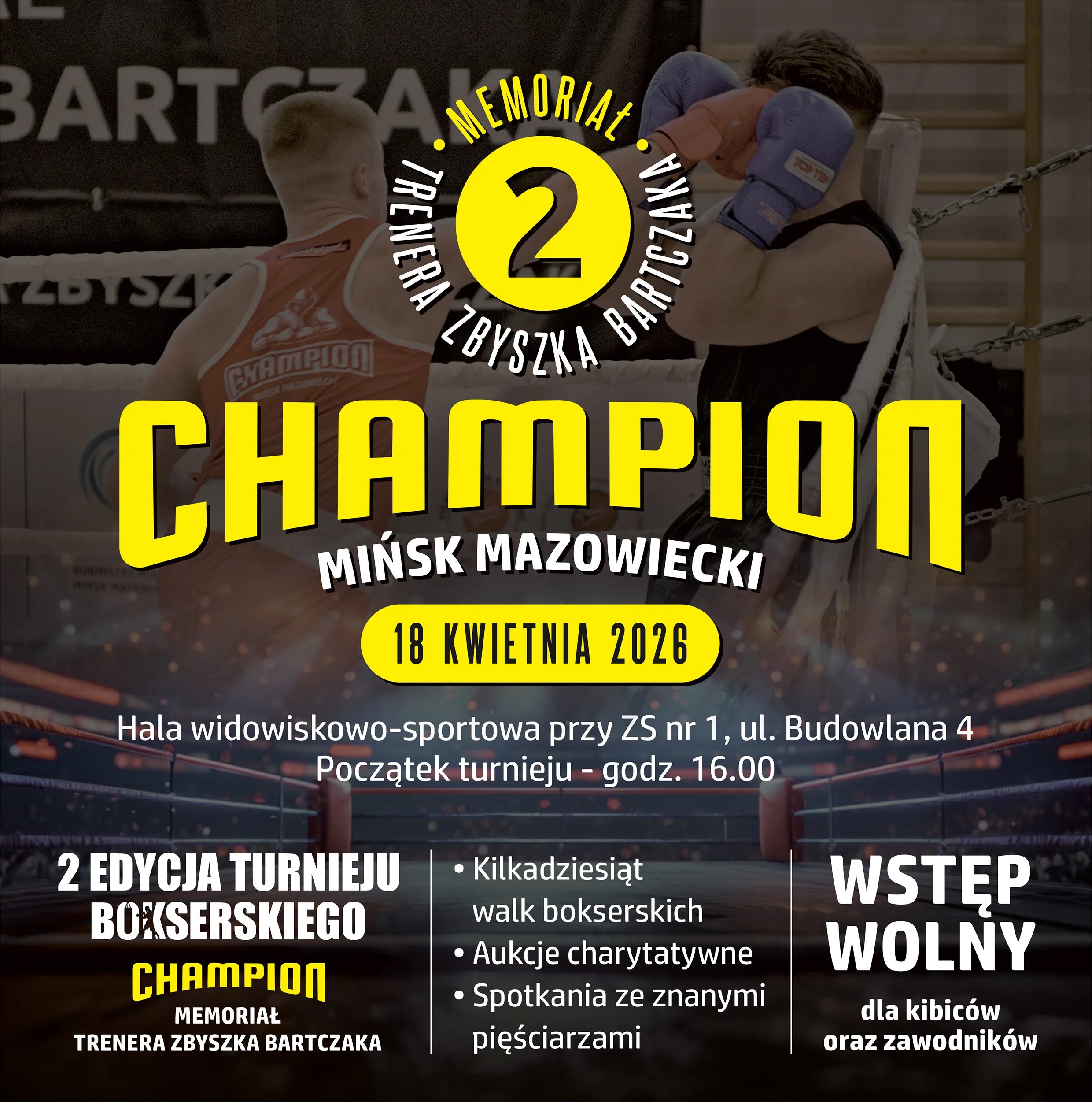 Mińsk Mazowiecki ponownie stanie się areną sportowych emocji. Już 18 kwietnia 2026 roku odbędzie się druga edycja Memoriału Trenera Zbyszka Bartczaka – wydarzenia, które łączy rywalizację sportową z wymiarem społecznym i charytatywnym. Turniej bokserski przyciągnie zarówno zawodników, jak i kibiców, oferując widowisko na wysokim poziomie oraz szereg dodatkowych atrakcji.