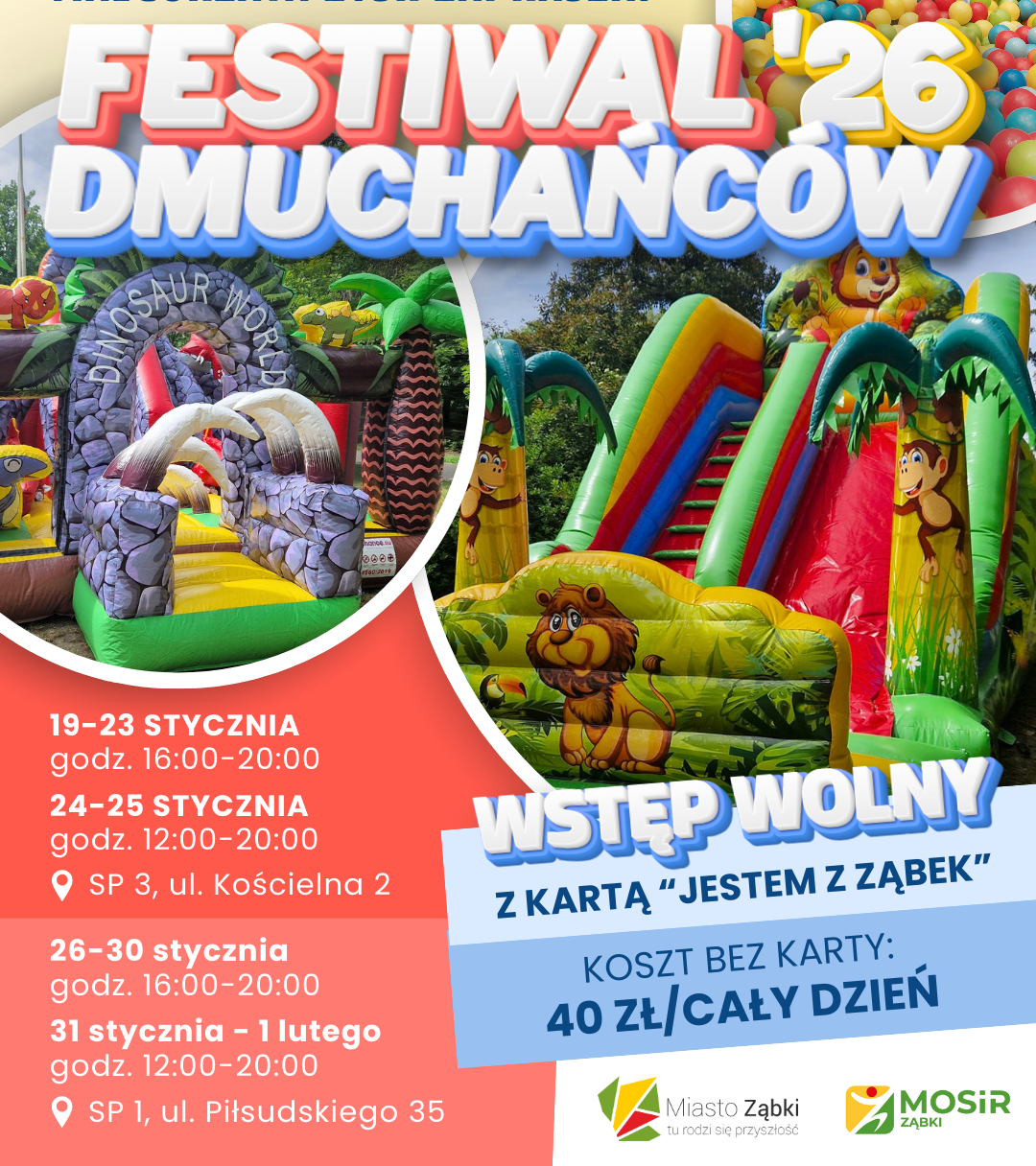 Ząbki na dwa tygodnie zamienią się w krainę zabawy. Festiwal Dmuchańców 2026 startuje już w ferie Tegoroczne ferie zimowe w Ząbkach zapowiadają się wyjątkowo atrakcyjnie. Wszystko za sprawą Festiwalu Dmuchańców 2026, na który zapraszają Burmistrz Miasta Ząbki Małgorzata Zyśk oraz Miejski Ośrodek Sportu i Rekreacji w Ząbkach. Przez dwa pełneCzytaj dalej